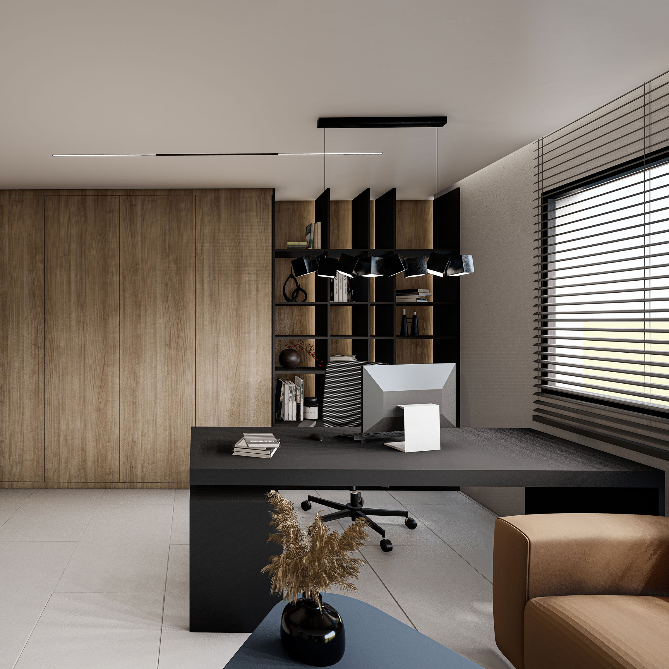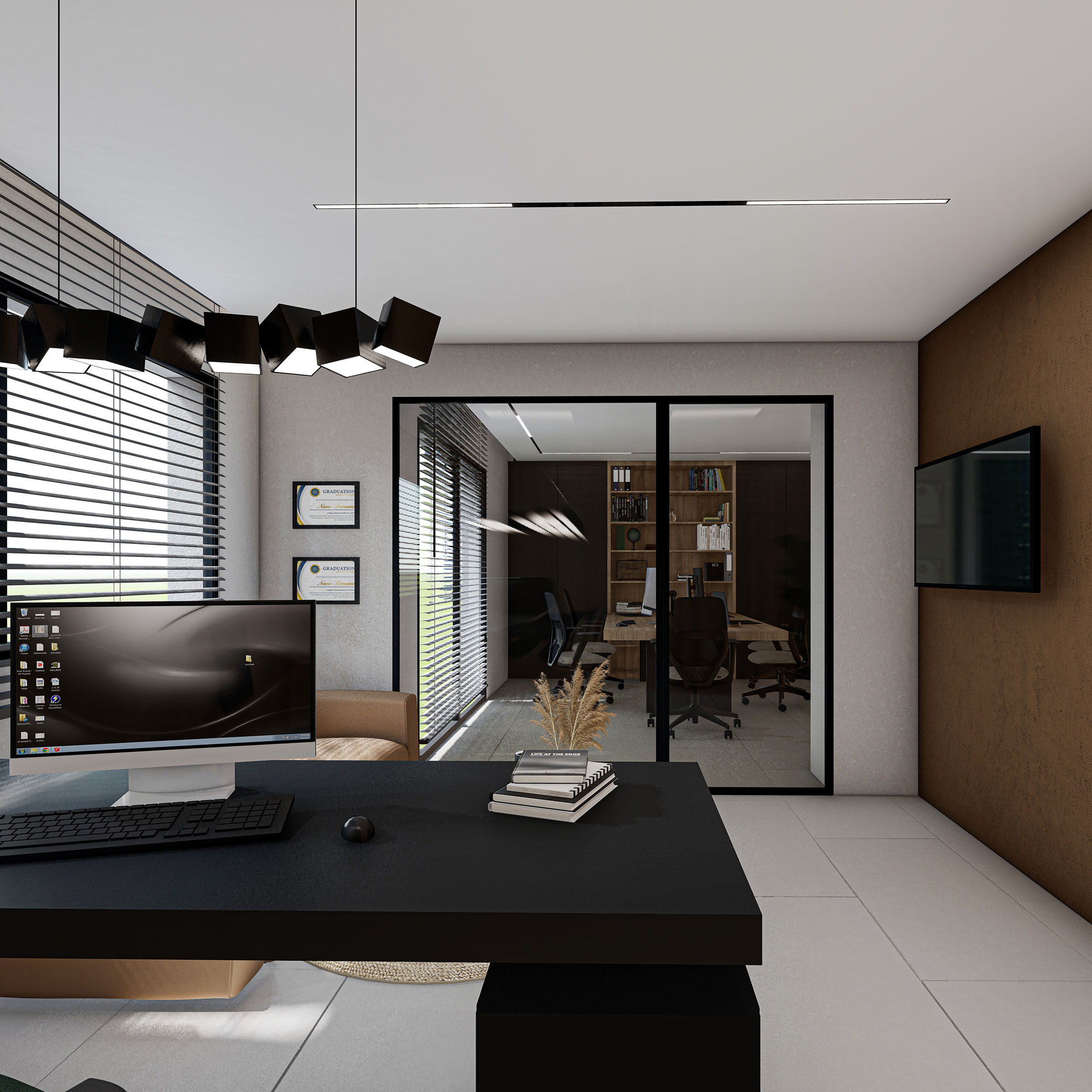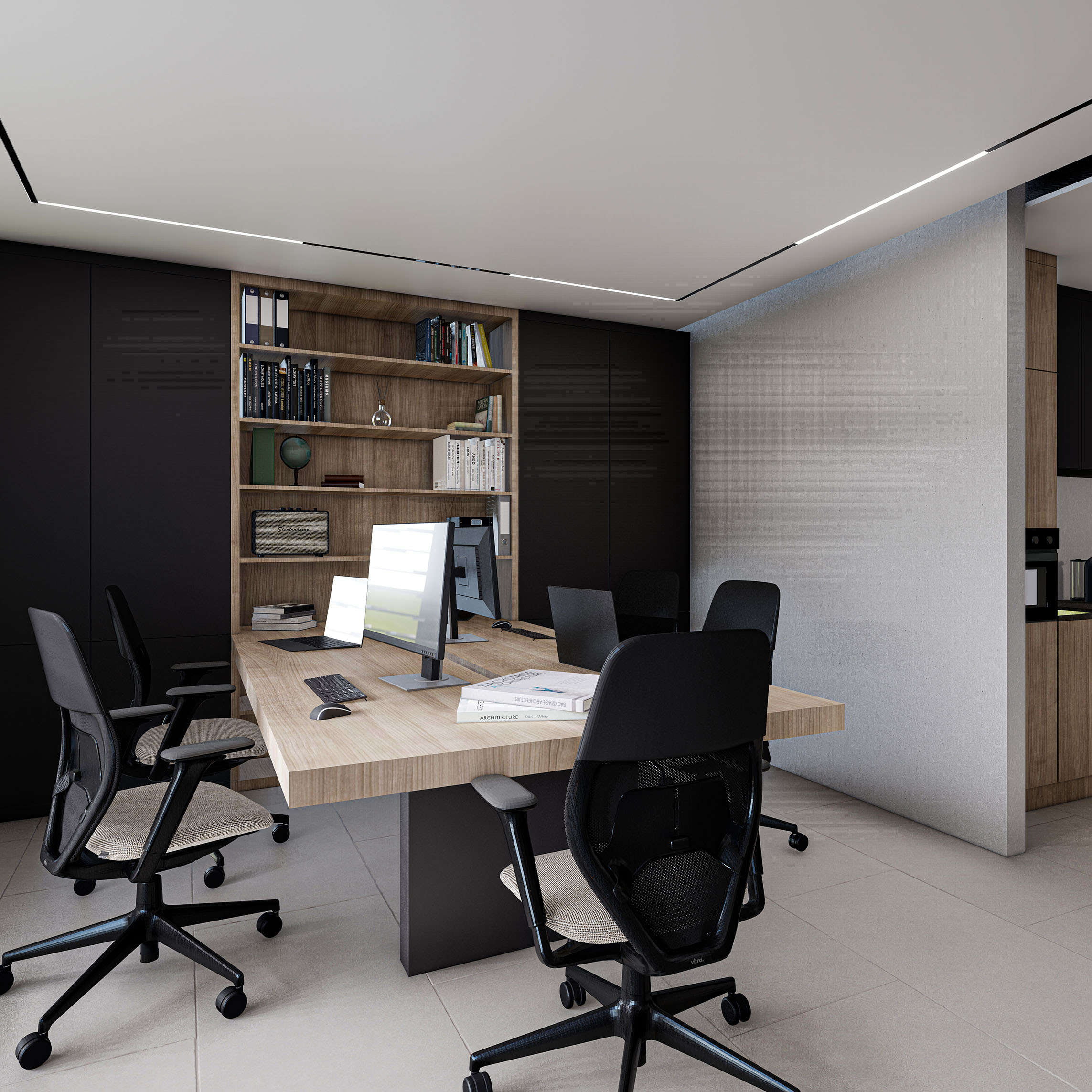 The "GeoSmart Office" project is a contemporary workspace designed to enhance efficiency,