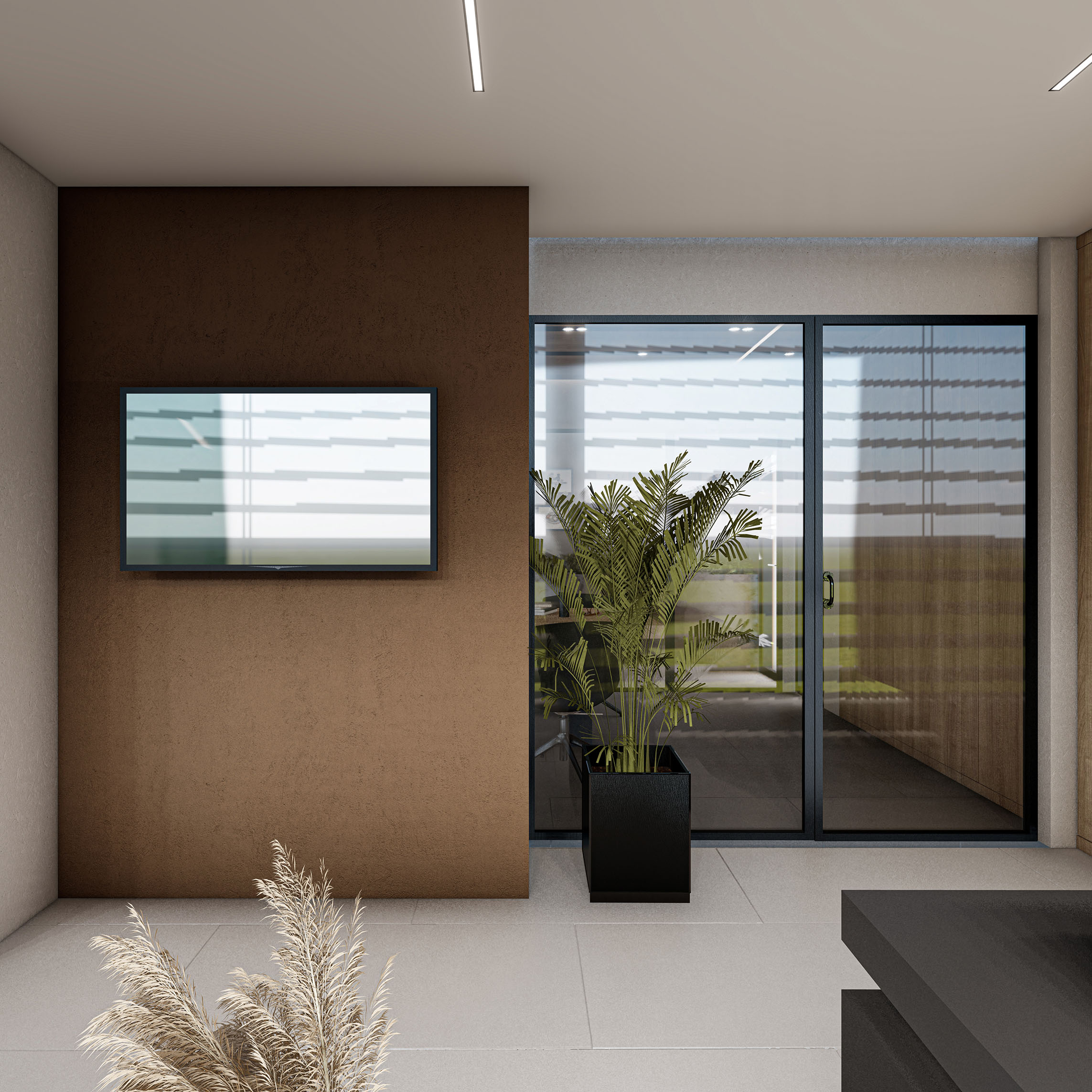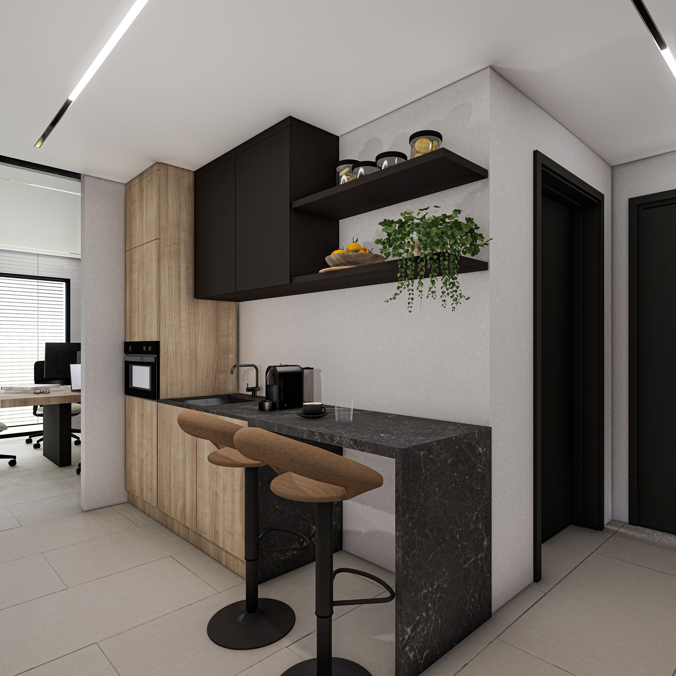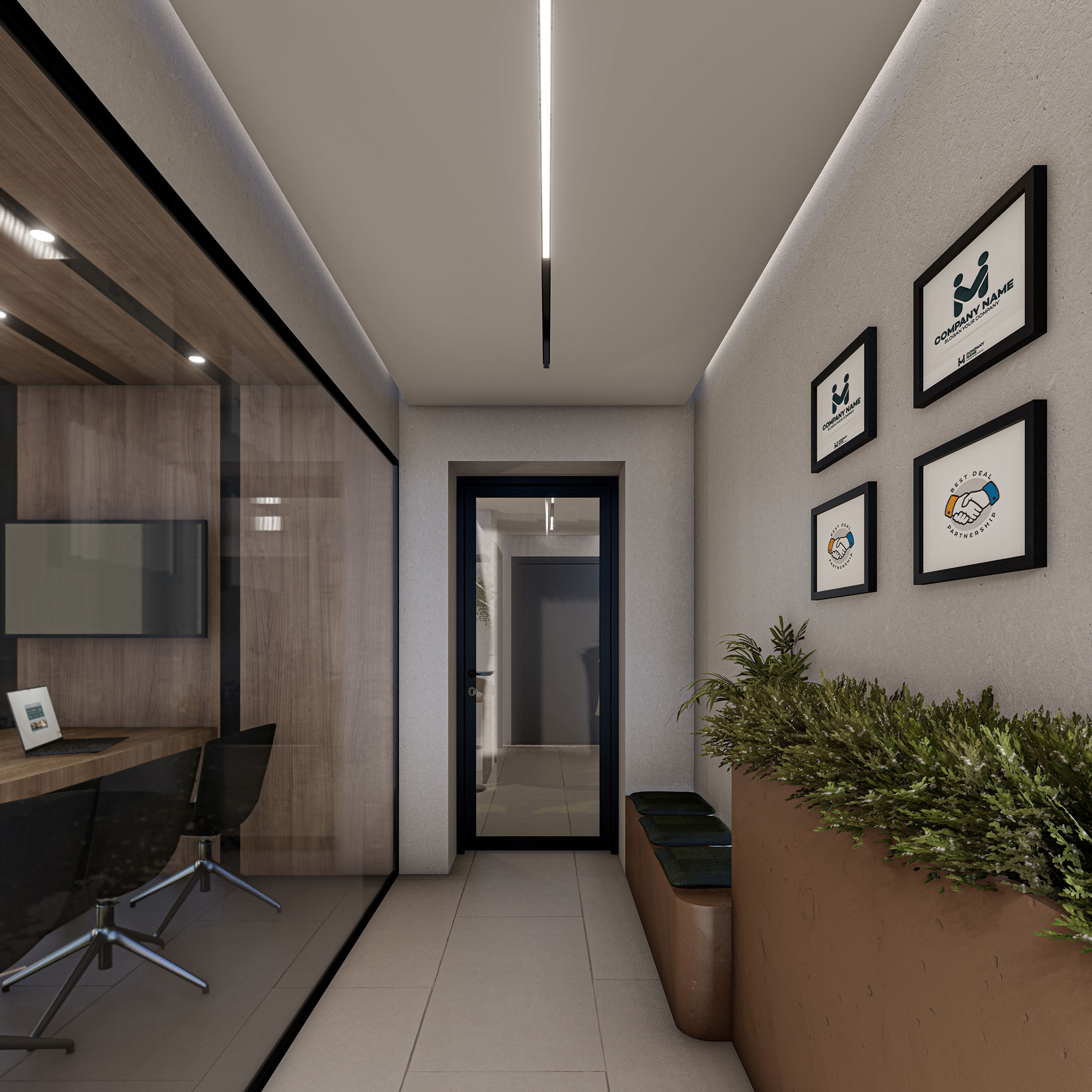 The "GeoSmart Office" project is a contemporary workspace designed to enhance efficiency,