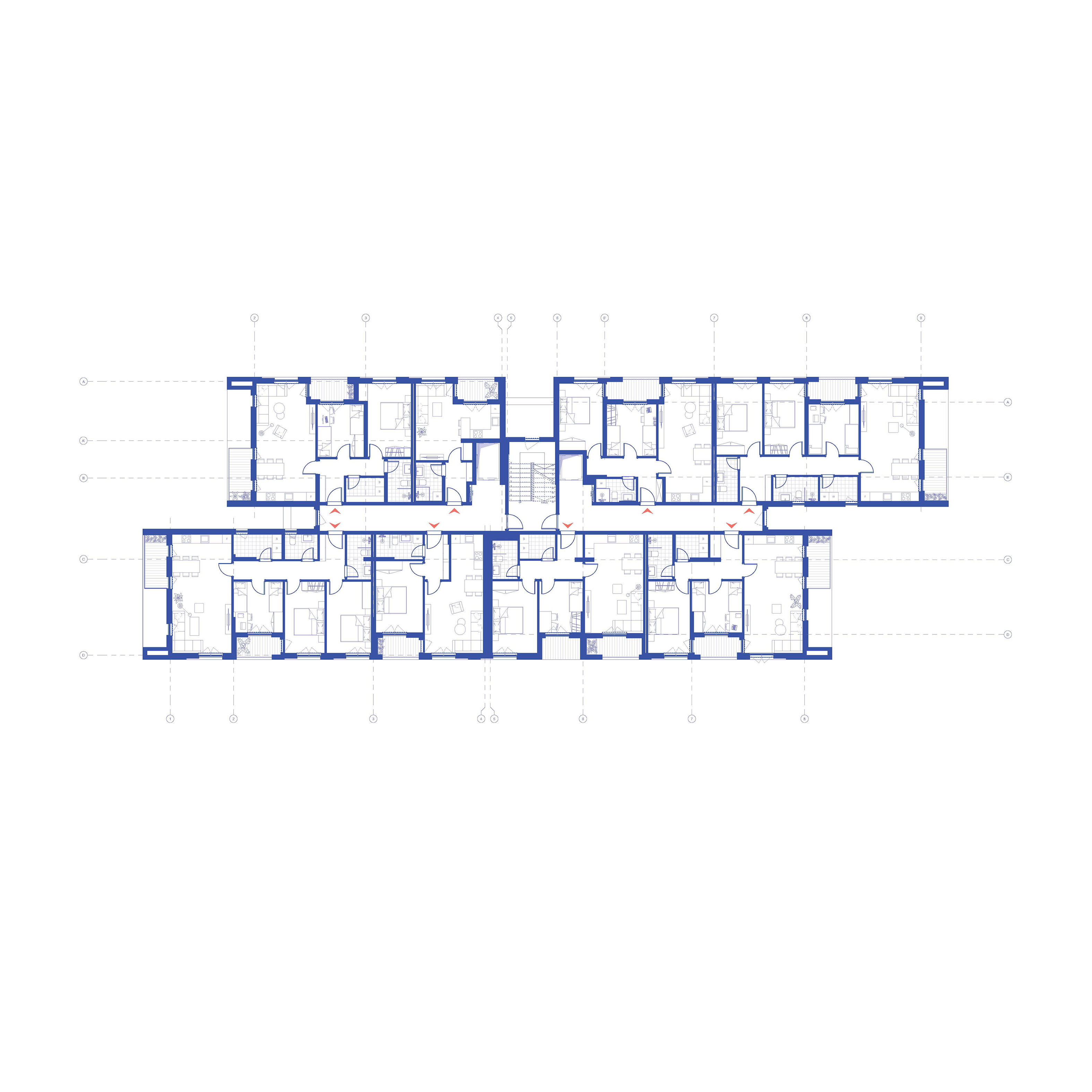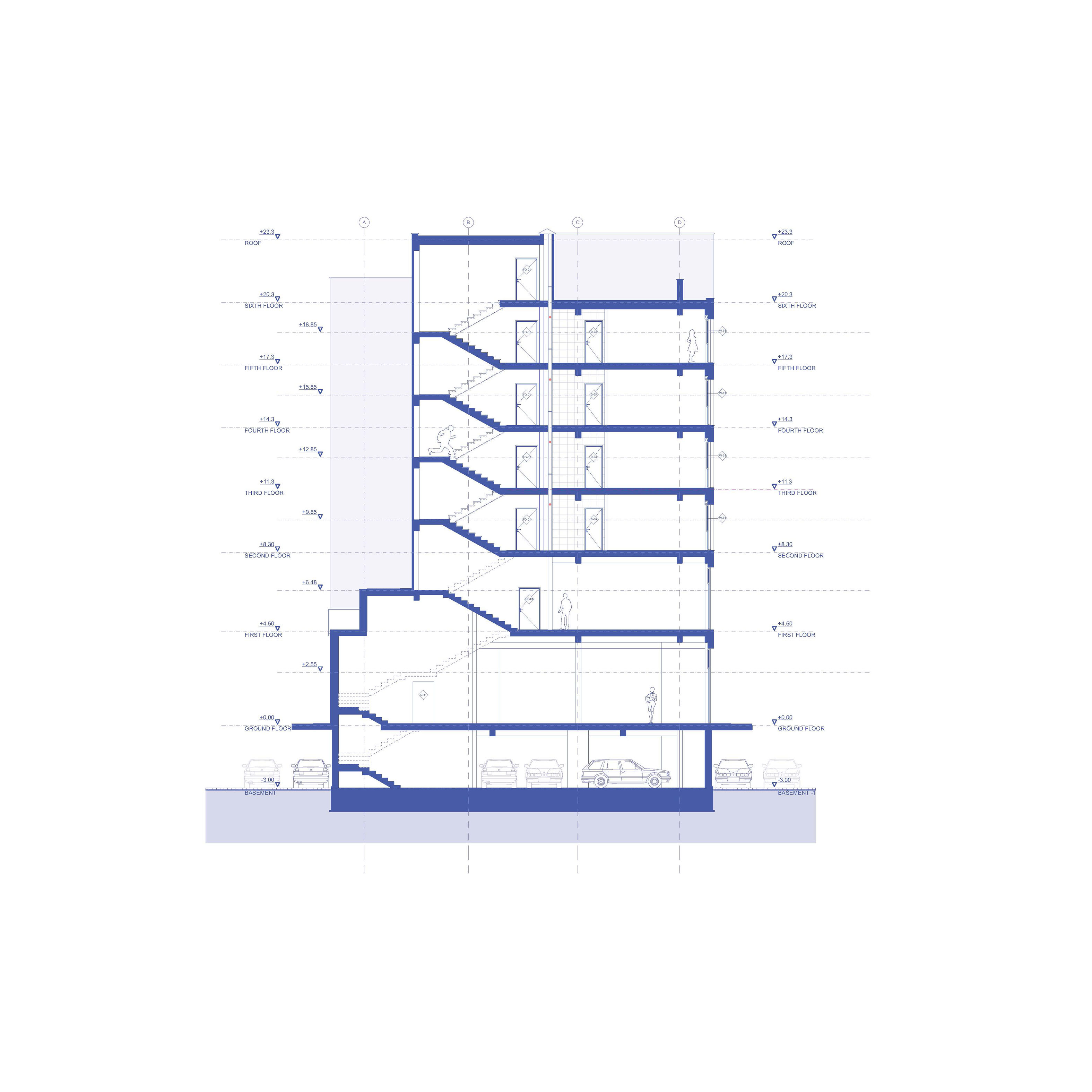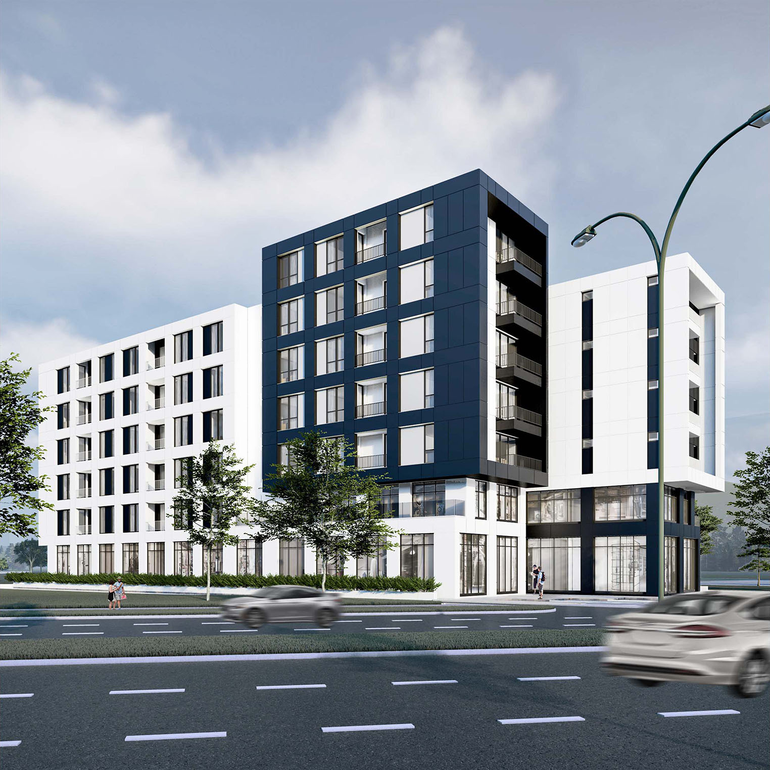 suggesting commercial spaces at the base, while the upper levels are designed for residential